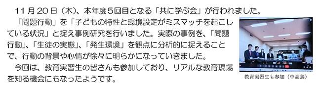 共に学ぶ会 ※ 両校の教員によるオンラインミニ研修会です。